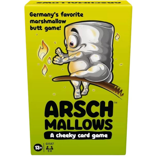 Find out why the Arschmallow game is Germany’s favorite marshmallow butt game! In this light strategy card game, the lower the points, the sweeter the score! Collect the cards with the lowest values. Each player starts with 6 facedown cards. They can quickly peek at 2, but the rest are a mystery. Throughout the round, players try to find out what point value is hidden among their cards, as they strategize to get cards with the lowest points. Use Action cards to sabotage friends or gain extra turns. The player with the lowest total value wins the round. And the player with the lowest value at the end of 6 rounds wins the game! Searching for fun party card games for families, adults, and teens? This laugh-out-loud indoor game is a tasty choice, and it makes a funny birthday or holiday gift for adults and teens ages 13 and up.