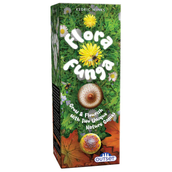 Flora Funga features two nature-inspired games in one elegant box with a magnetic wrap-around board. In FLORA, dandelions sprout, bloom, then scatter as shifting winds reshape the landscape while you race to complete mission cards. In FUNGA, mushrooms form intricate patterns as you place, connect, and disrupt using clever moves and unique powers to score the most points. Two distinct challenges, one striking package – grow, adapt, and outplay your rivals.